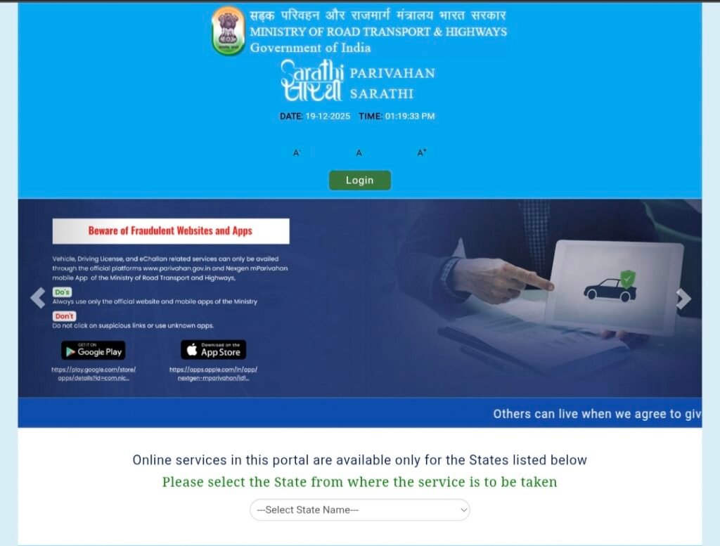 सबसे पहले परिवहन विभाग की आधिकारिक वेबसाइट https://parivahan.gov.in/parivahan/ पर जाएं।